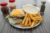 Mozzarella, seasoned ground beef, salsa, chopped tomatoes, lettuce, shredded cheddar & sour cream.
